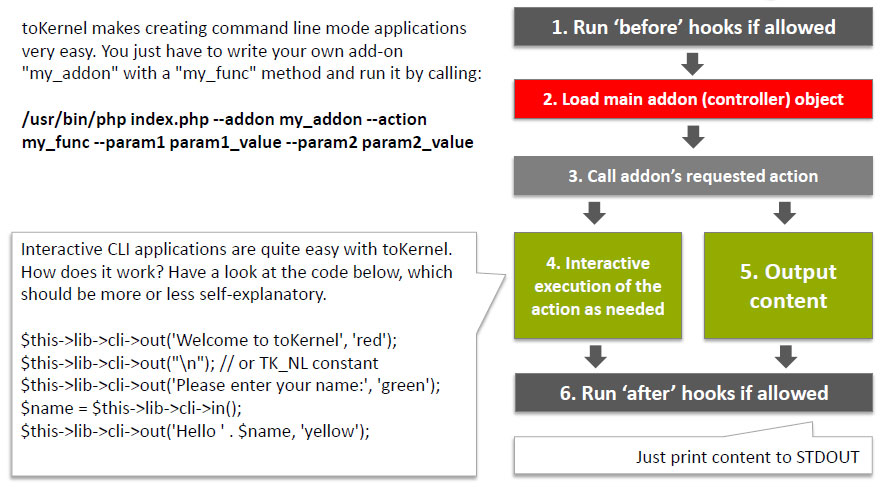 See also: CLI class library CLI with interactive mode Aliasing for URL and CLI arguments Managing aliases for URL and CLI arguments